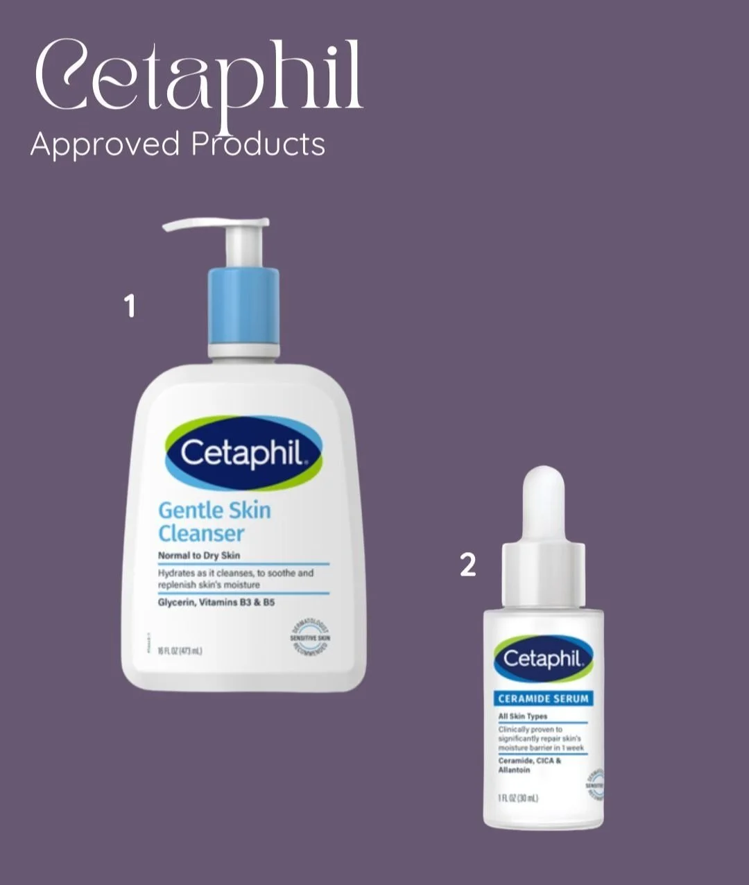 1: Gentle Skin Cleanser 2: Ceramide Serum