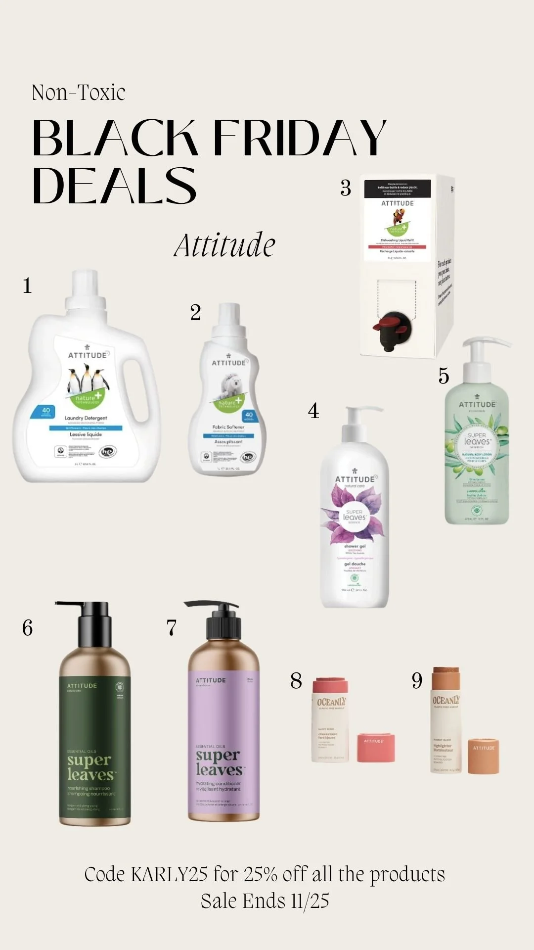 ATTITUDE is my go to brand for affordable non-toxic products for literally every area of my life and home! All of their products are approved and non-toxic. They rarely have sales and gave me an exclusive 25% off code KARLY25 until 11/25/23
