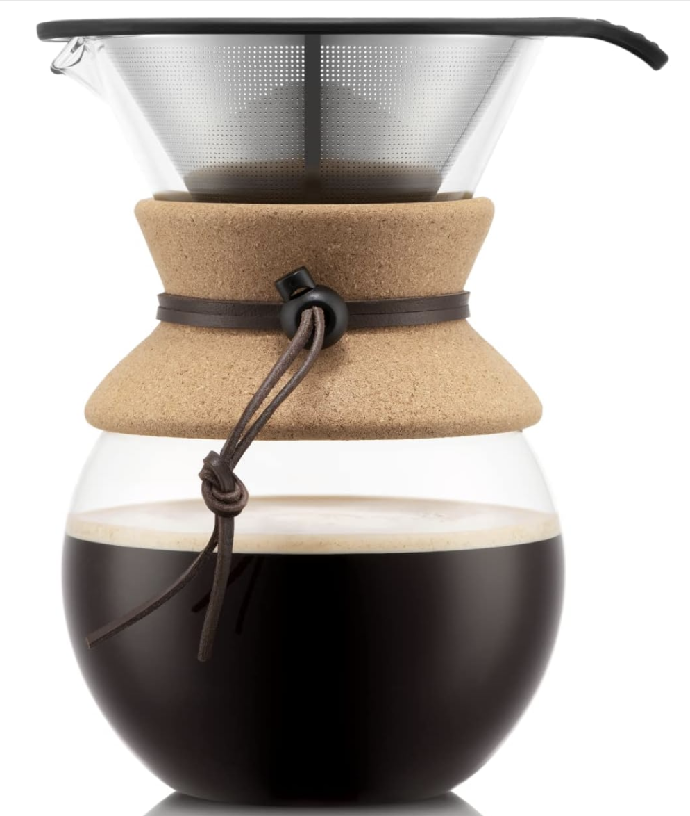 Glass | Affordable | Easy to clean & store | Comes with reusable stainless steel filter |