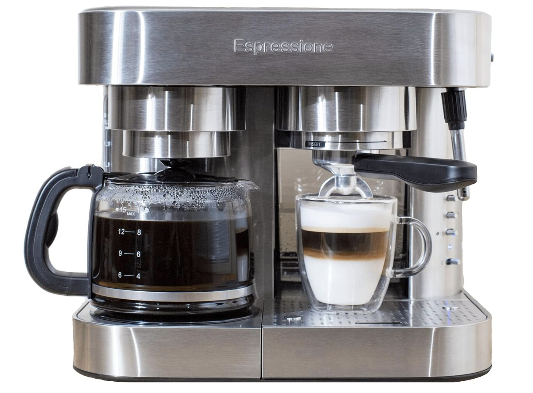 Stainless Steel & Glass | Drip Coffee | Espresso | Milk Frother | 10 Cup