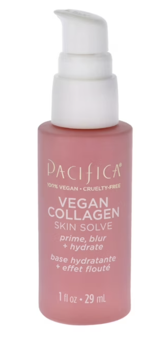 1: Pretty Smart Diffusing Face Primer (low-tox) 2: Pretty Smart Bronze Illuminating Face Drops (low-tox) 3: Pacifica Collagen Skin Solve (low-tox)