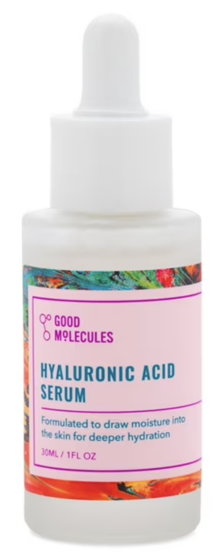 1: Good Molecules Hyaluronic Acid Serum (non-tox) 2: Good Molecules Niacinamide Serum (non-tox) 3: Good Molecules Discoloration Serum (non-tox) 4: TruSkin Vitamin C Serum (non-tox) 5: TruSkin Retinol Serum (low-tox) 6: Bubble Exfoliating Serum 7: Bubble Soothing Face Oil