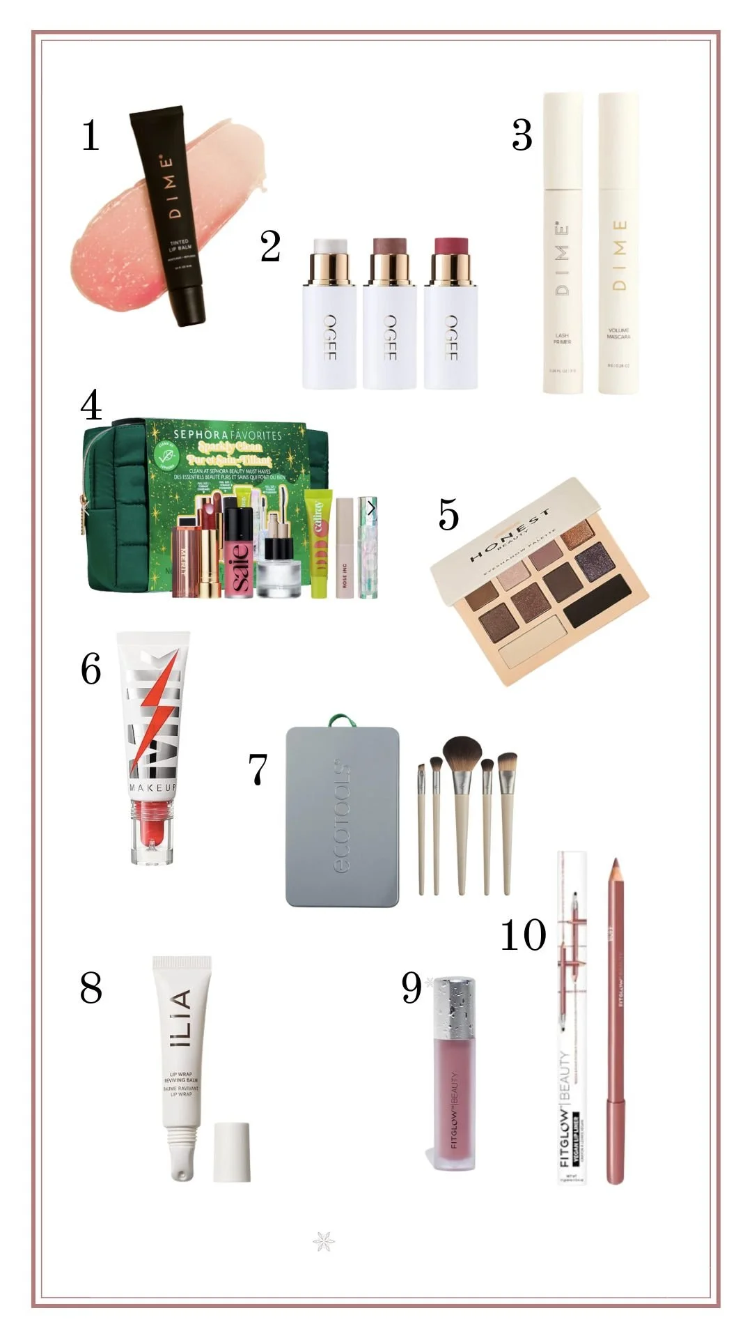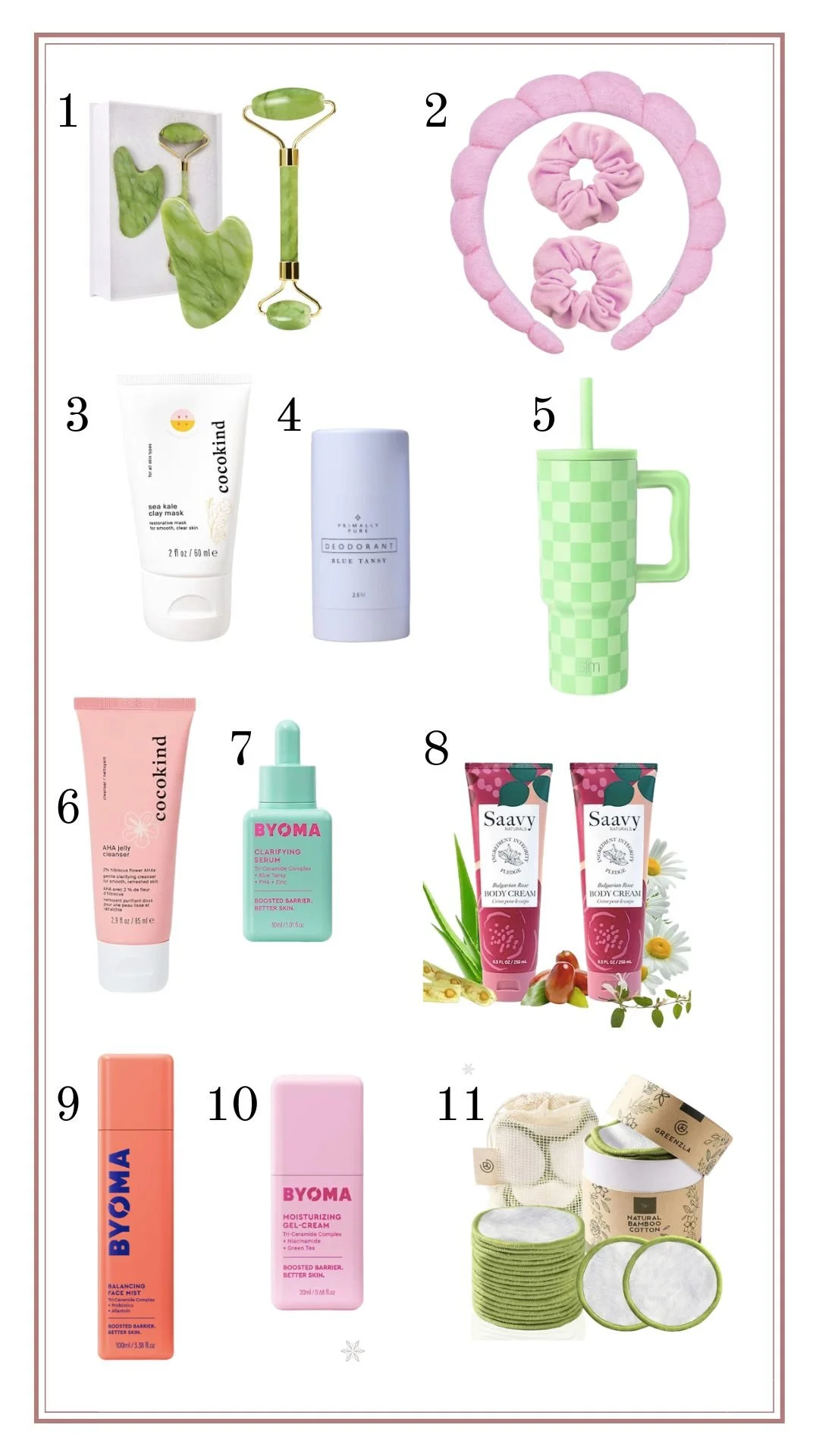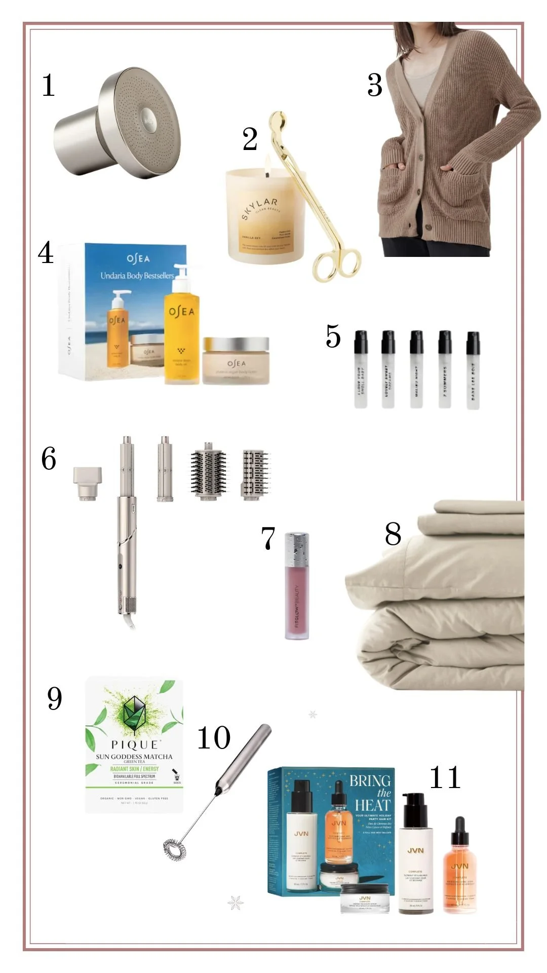 1: Osea Glow All-Over Body Set 2: Satin Hair Towel 3: Osea Eye Serum 4: Beekman 1802 Milk Shake HA Face Mist 5: Kitsch Heatless Curlers 6: Pacifica Nail Polish 7: Beekman 1802 Skincare Set 8: Kitsch Satin Pillowcase 9: Osea Bestsellers Set For Face + Body 10: Wet Hair Brush