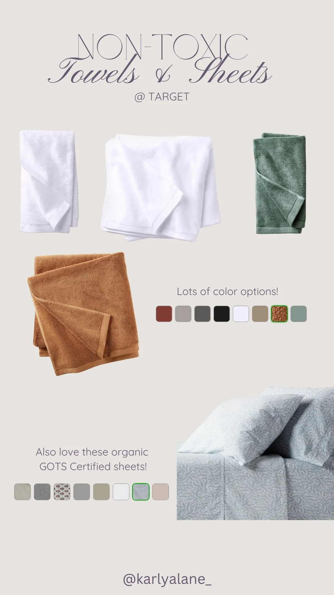 Why are these my favorite? Well… they are a great price, they are so big which I love (I got the sheet size), they are nice and soft and they wash really well. They get even better after each wash! They may shed after the first wash but once you wash them again it will stop. For the price, quality and the GOTS Certification…these are the best non-tox towels! I also tried these organic GOTS Certified sheets from Target and I am pleasantly surprised. They are the perfect summer sheets because they keep you cool!