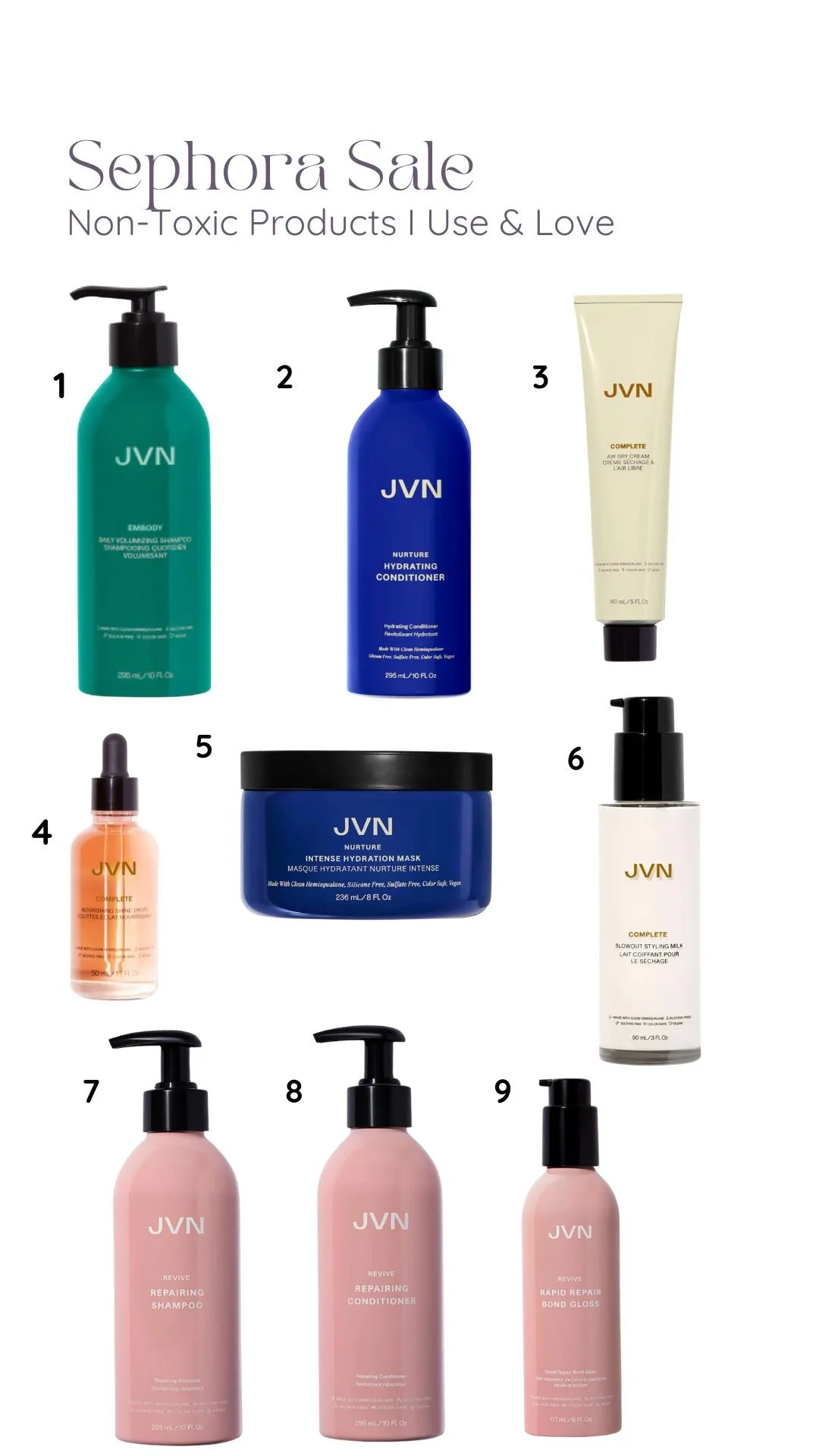 1: JVN Volumizing ShampooI bought this 2 Sephora sales ago for the first time and fell in love! It’s the perfect non-toxic shampoo for any hair type. It’s doesn’t leave your scalp oily and suds up nicely.
