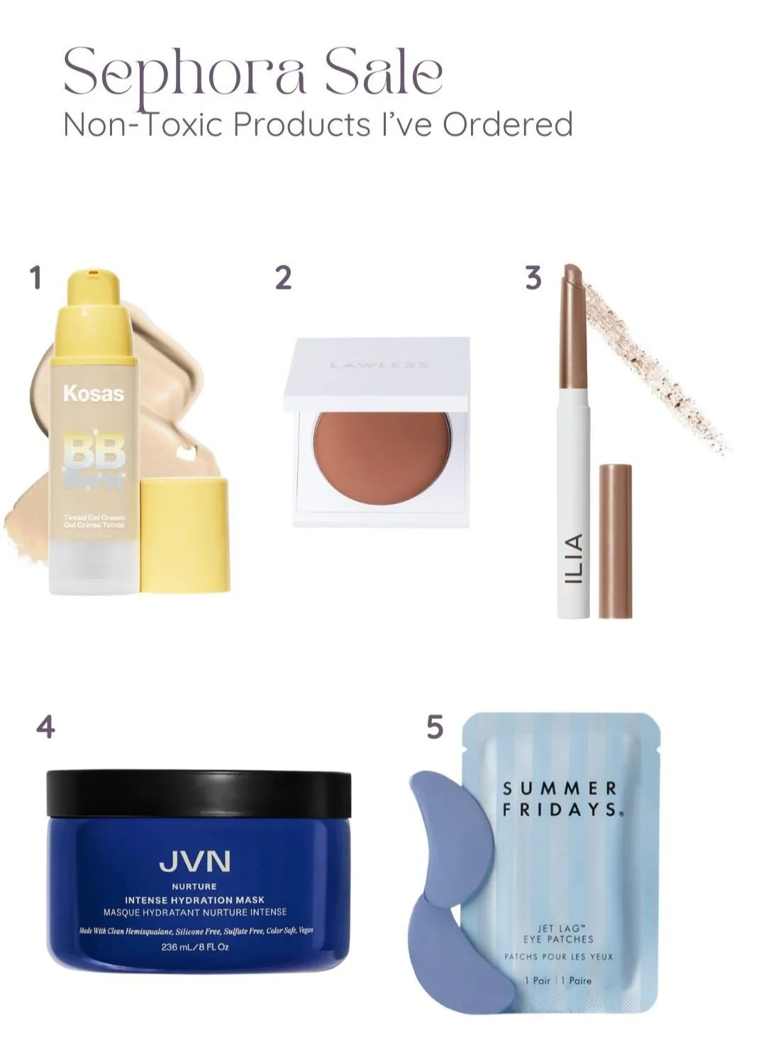 5: Summer Fridays Jet Lag Eye Patches A new try for me! i was surprised these are non-toxic so I had to give them a try. I will let you know how they are!