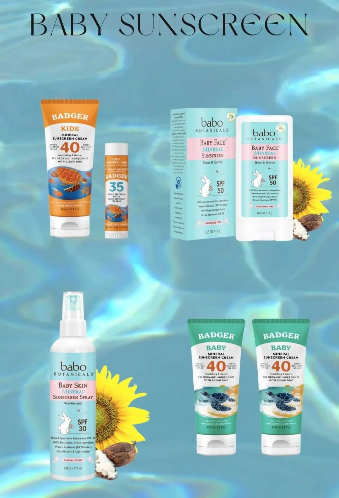 Body Sunscreen, Baby Sunscreen, Face Sunscreen, SPF Lip Balm, After Sun Care, Bug Repellant, Bug Repellant Candles & Self Tanner