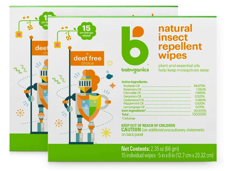 Babyganics DEET Free Travel Size Insect Repellant Wipes